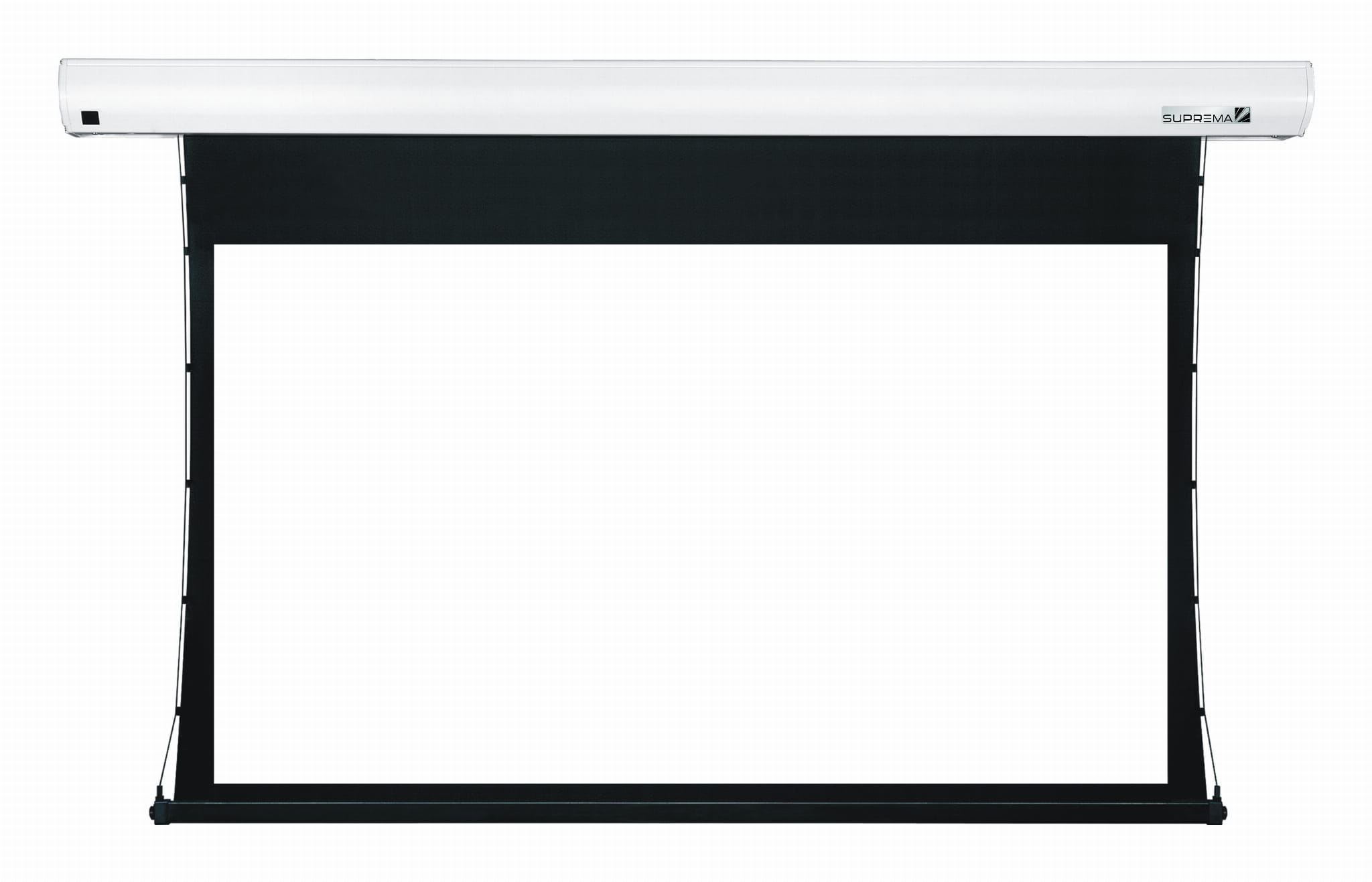 - Ekran elektrycznie rozwijany z systemem bocznych napinaczy gwarantujących jeszcze lepsze napięcie materiału i płaską powierzchnię,